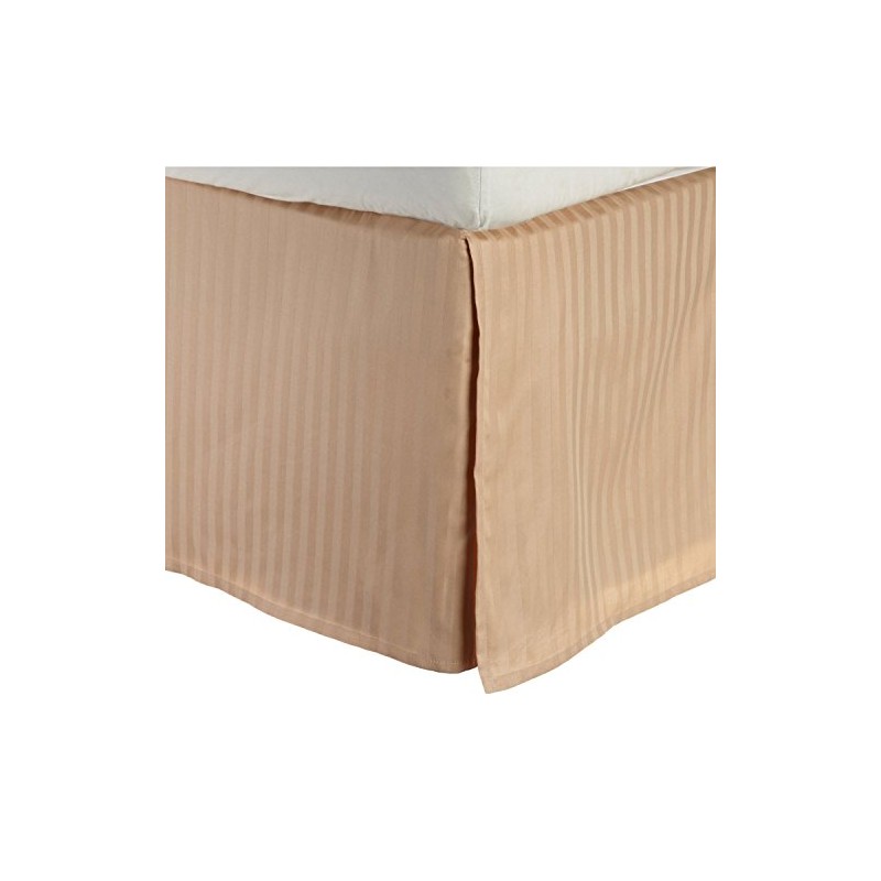 Superior Combed Cotton 300 Thread Count Bed Skirt Stripe, Beige, King