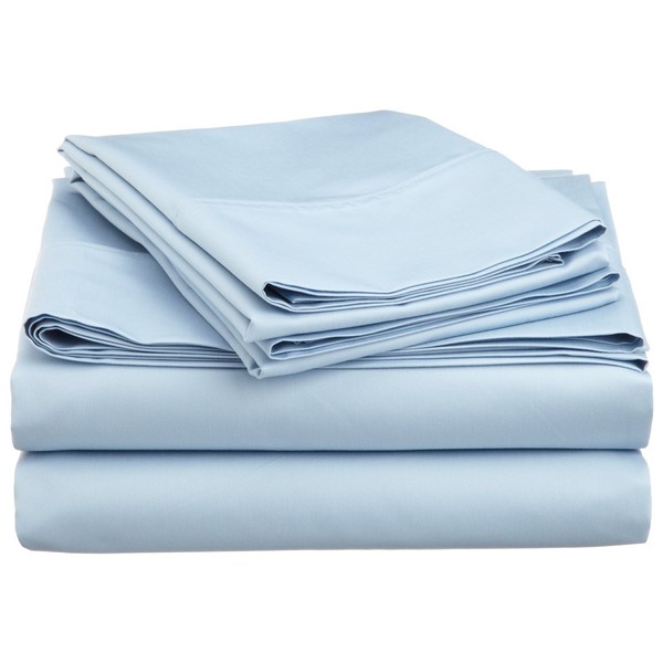 Superior CR600 Cotton Blend Bed, Solid Design, Elegant Sateen, House Basics, Set Includes 1 Flat, 1 Elastic Deep Pocket Fitted Sheet, 2 Pillowcases-Twin XL, Light Blue