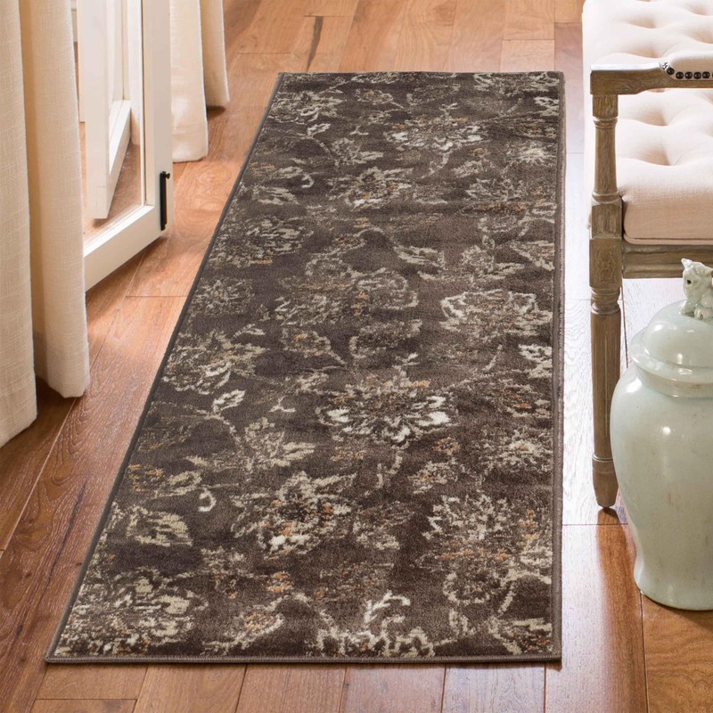 Superior Indoor Large Area Rug for Hallways, Entry, Office, Living/Bedroom, Hardwood, Tile, Floor Cover, Plush Carpet Cover, Modern Farmhouse Floral Decor, Jacobean Collection, 2' 7" x 10', Chocolate