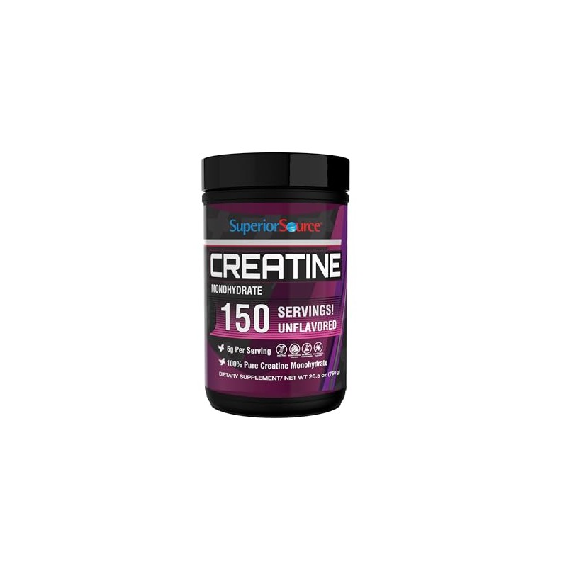 Superior Source Creatine Monohydrate, 750G, 5000mg Per Serv (5g) - 150 Servings, 26.5 oz, Muscle Growth, Enhanced Strength, Supports Post-Workout Recovery, Ideal for High-Intensity Training, Non-GMO