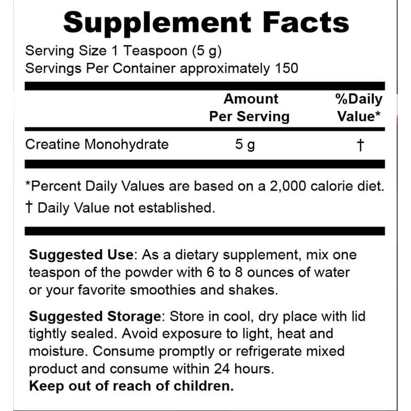 • CLEAN PRODUCT: We care about your health and fitness. Our product contains no artificial sweeteners, no colored dyes, no unnecessary fillers, no harmful additives, so you can enjoy a clean supplement without sacrificing quality. Designed to fit into your everyday routine, our Creatine is unflavored; so you can add it to your protein shake, smoothie, or any other beverage of your choice without changing the taste