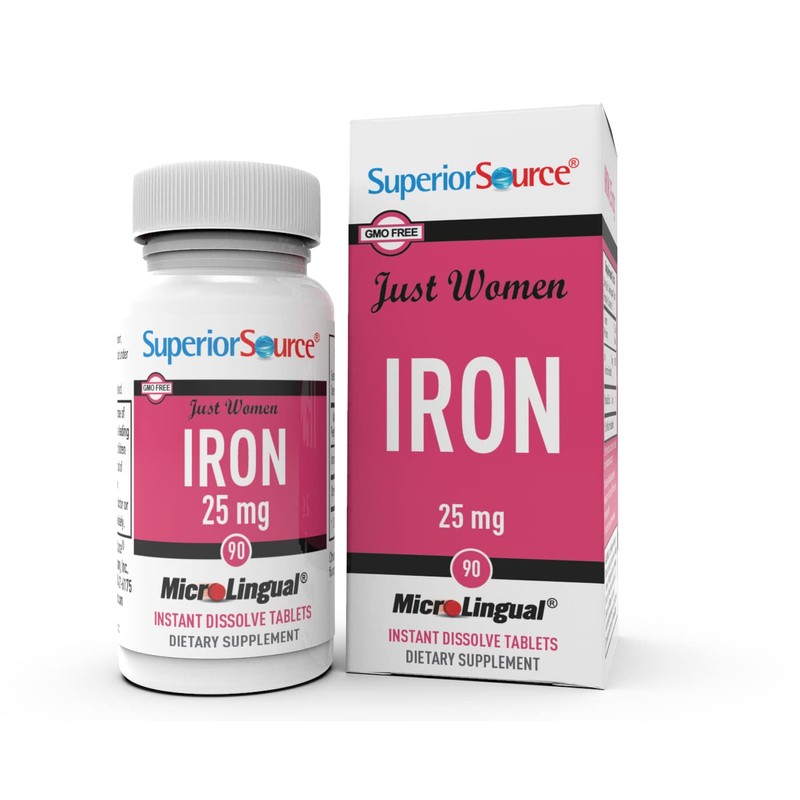 Superior Source Just Women - Iron 25 mg, (Ferrous Fumarate), Under The Tongue Quick Dissolve Sublingual Tablets, 90 Count, Easily Absorbed, Assists Red Blood Cell Formation, Non-GMO
