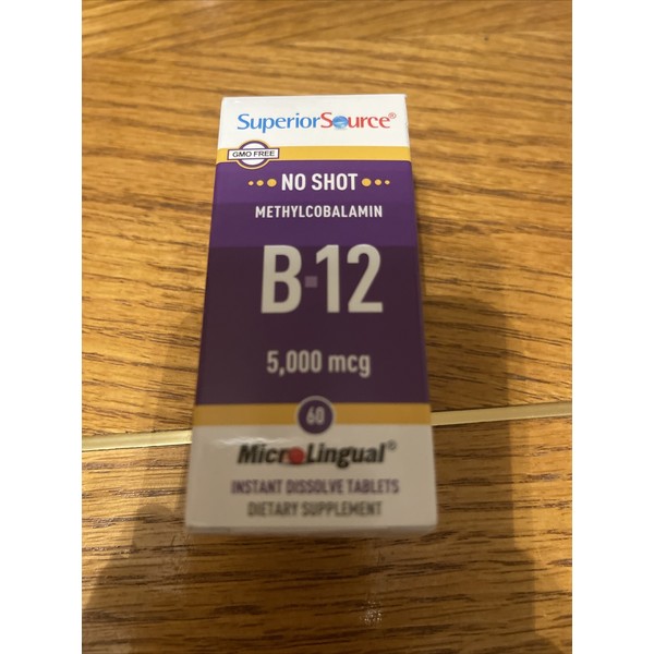 Superior Source No Shot Methylcobalamin B12, 5000 mcg, 60 Sublingual Tablets.