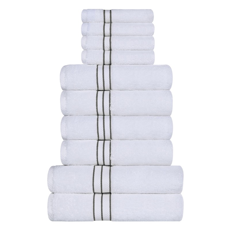Superior Turkish Cotton Ultra-Plush 10-Piece Towel Set, Ideal for Master Bath, Guest Bathroom, Fast Drying, Shower, Spa, Face/Washcloths, Hand, Bath Towels, Absorbent, Home Basics, Charcoal