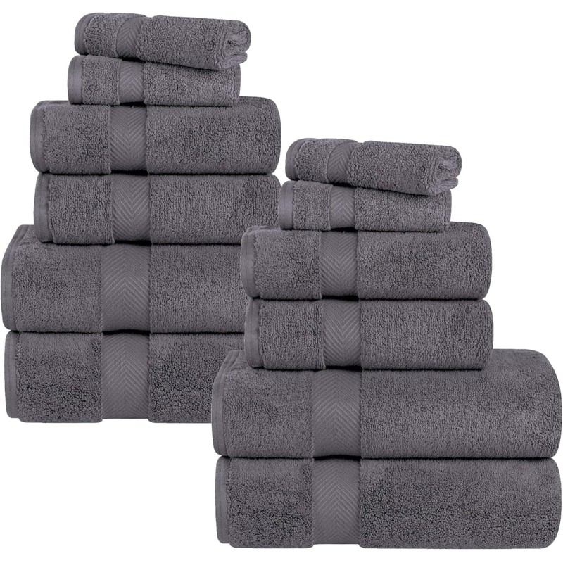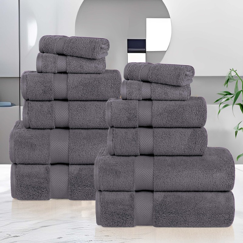 Superior Zero Twist Cotton 12 Piece Assorted Towel Set, Includes 4 Bath, 4 Hand, 4 Washcloth/Face Towels, Quick Dry, Home Essentials, Shower, Spa, Luxury Plush Soft Absorbent Towels, Grey