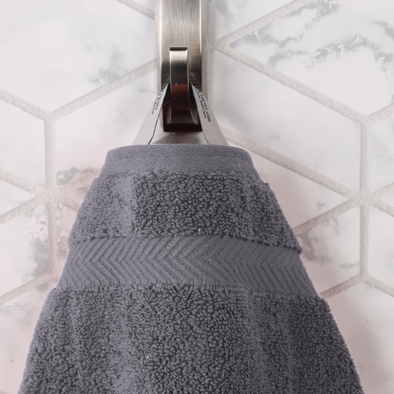 - πππππππ ππππππ: Features a versatile solid pattern with a chevron dobby border for unique style; Enhance any master bath, powder room, or guest bathroom with this towel set; Hanging loop allows you to easily hang each towel
