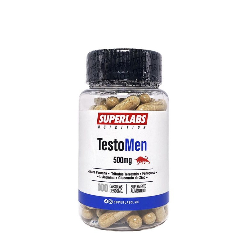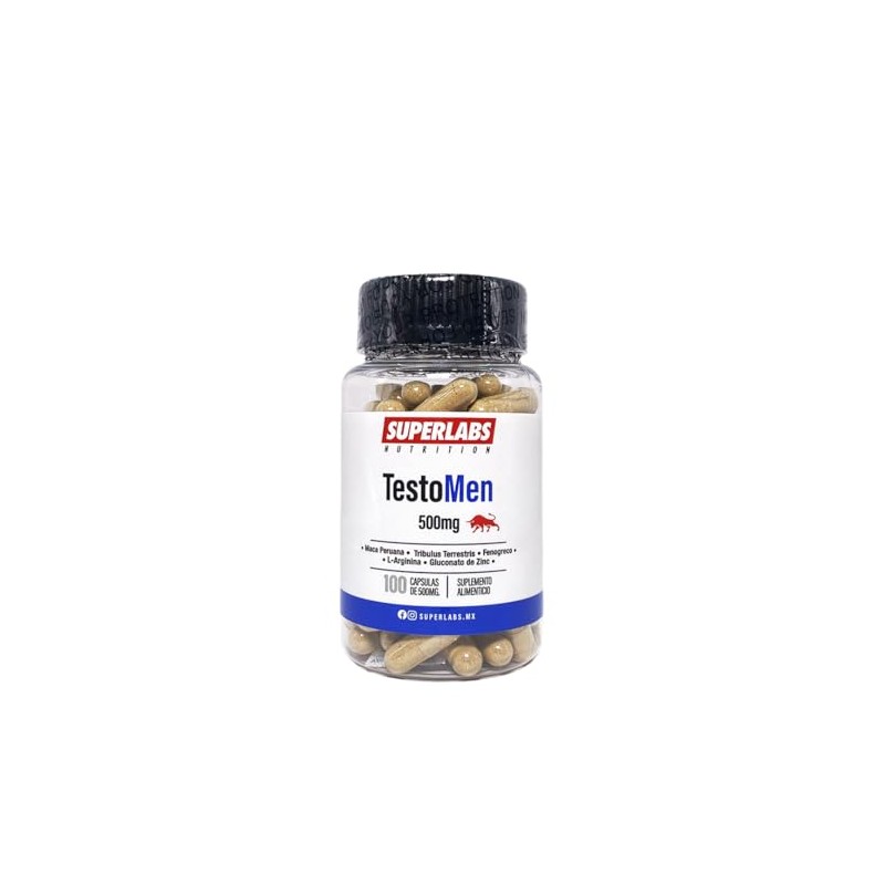 Superlabs Nutrition TestoMen – Suplemento Alimenticio sin Hormonas para Hombres 100% Natural | 100 Cápsulas de 500 mg