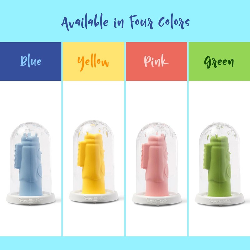 SuperMouth® Tooth Keri Baby Finger Brush – Soft Silicone Bristles, Built-in Bite Block Protects Fingers, Light-Up Wand for Easy Cleaning, Augmented Reality App, Teething to 2 Years, 4 Colors