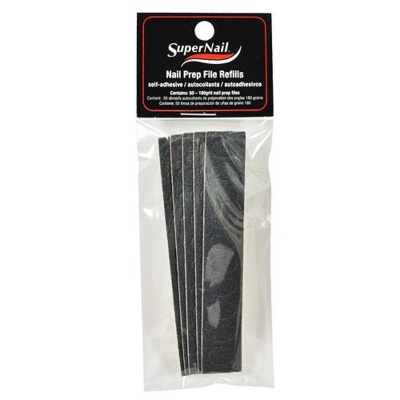 - Contains 5 strips of 10 self-adhering nail prep files