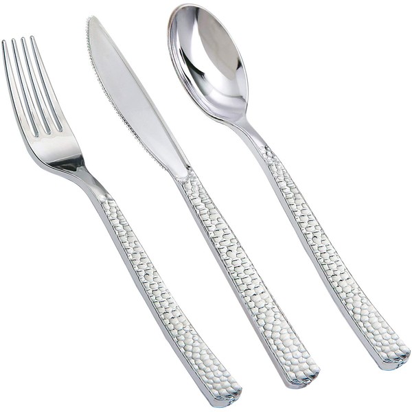 - Elegant Design: the silver plastic cutlery have specail hammered handle like the diamond which can suit for any occasions.