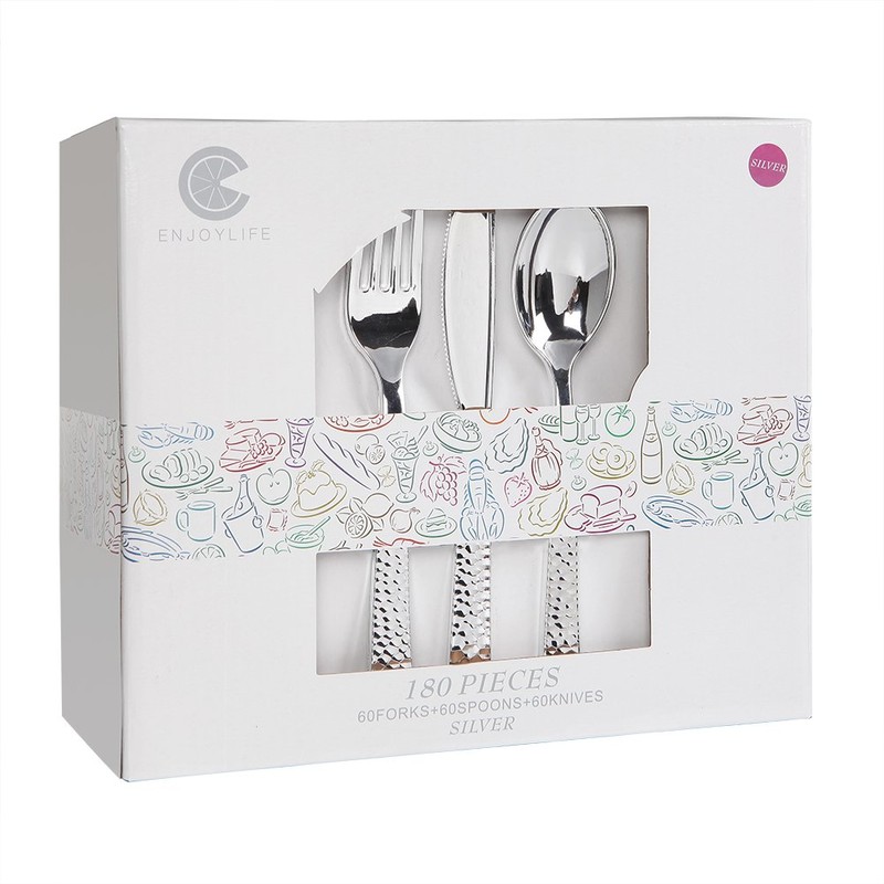 Enjoylife's Superior diamond silver disposable silverware with the special textures in the handle and have a good feeling. It can be served with any tableware to bring comfort to your meal time.It is perfect for formal dinners, banquets, weddings, corporate events and holiday parties as well as everyday mealtime, picnic and so on. It is packed in sturdy box which is a good gifts for friends and family.The proper size and weight can use to any kind of food too. After the dinner, pls throw them away which can save the time and let's to enjoy more time in the party. Hope our goods can enlightening your life and make your time in happy.