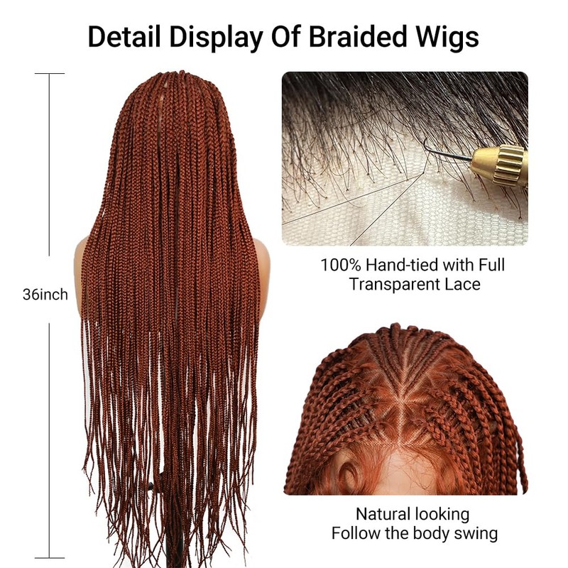 SUPERNOVA #350 Full Lace Box Braided Wig Special Top Design Knotless Braided Wigs For Black Women Transparent 360 Full Lace Handmade Synthetic Hair Boho Braids Wig Orange Ginger Colored Wigs 36inch