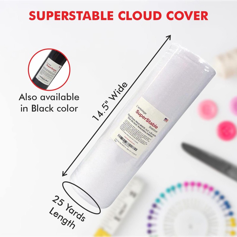 Superpunch Cloud Cover Stitch 14.5 inch x 25 Yard Roll, SuperStable Lightweight Stabilizer Iron On Over The Back Fusible, Iron On Soft Cutaway Stabilizer Embroidery Machines Backing White Made in USA