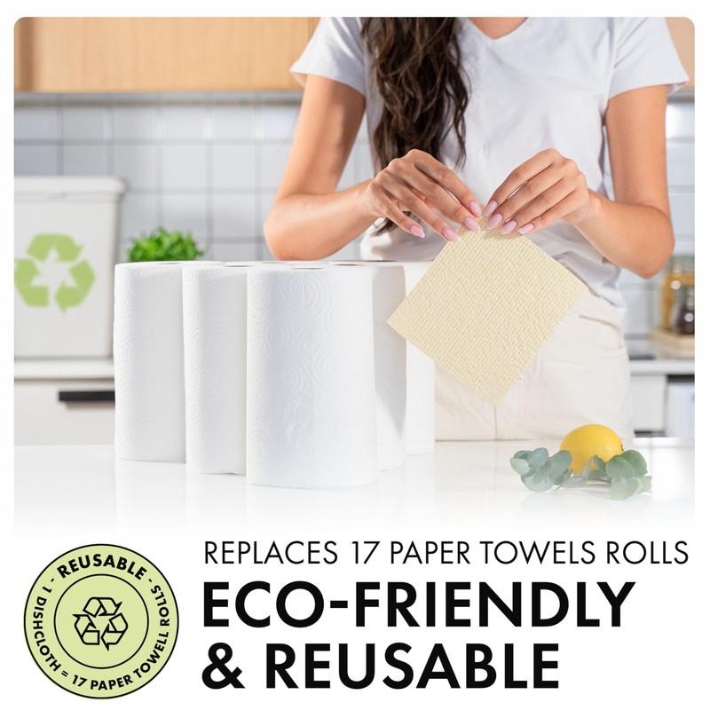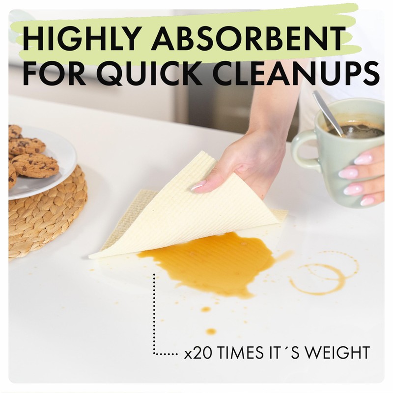 • 🧽 π—₯π—˜π—¨π—¦π—”π—•π—Ÿπ—˜ 𝗔𝗑𝗗 π—¦π—¨π—£π—˜π—₯ 𝗔𝗕𝗦𝗒π—₯π—•π—˜π—‘π—§: Washable, Fast-drying and no more smelly odor. Our European dishcloths can be washed up to x50 times in the dishwasher or washing machine. Super absorbent, absorbing 20 times more liquid than its weight!