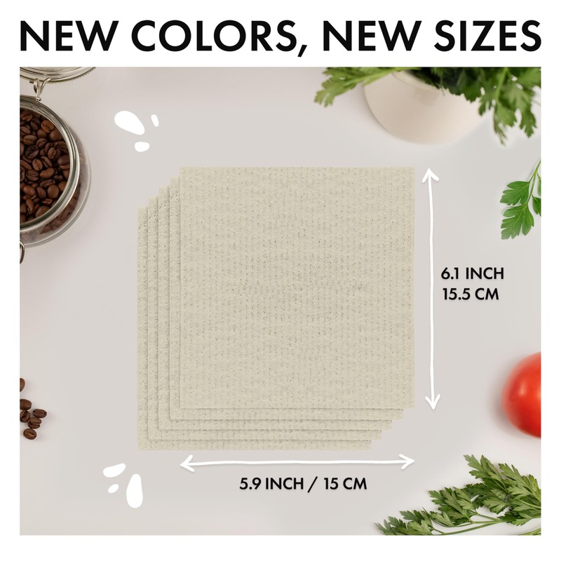 SUPERSCANDI 5 Pack Swedish Dishcloths for Kitchen - 100% Biodegradable & Compostable | Reusable Paper Towels Washable, Food-Safe & Without Plastic - Dish Rags Suitable for Any Surface | Premium, Sand