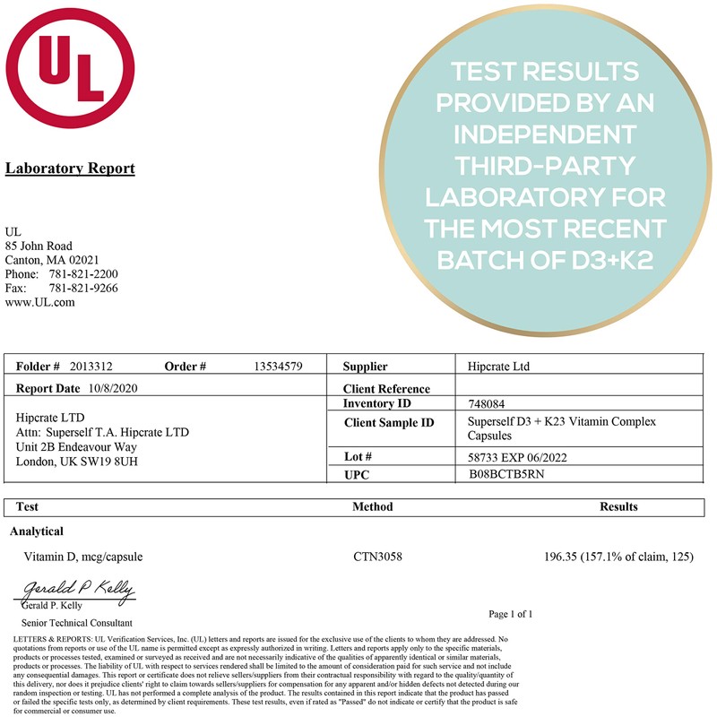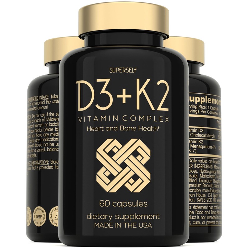• POTENT DAILY DOSE C Make taking your vitamins easy, safe and convenient. Each SuperSelf vitamin D3 K2 capsule contains 5000 IU of vitamin D3 and 100mcg of vitamin K2. Each package contains 60 capsules, which is a 2-month supply at the recommended dose of 1 per day. Both vitamin D and vitamin K are essential to ensure the better functioning of our bodies.