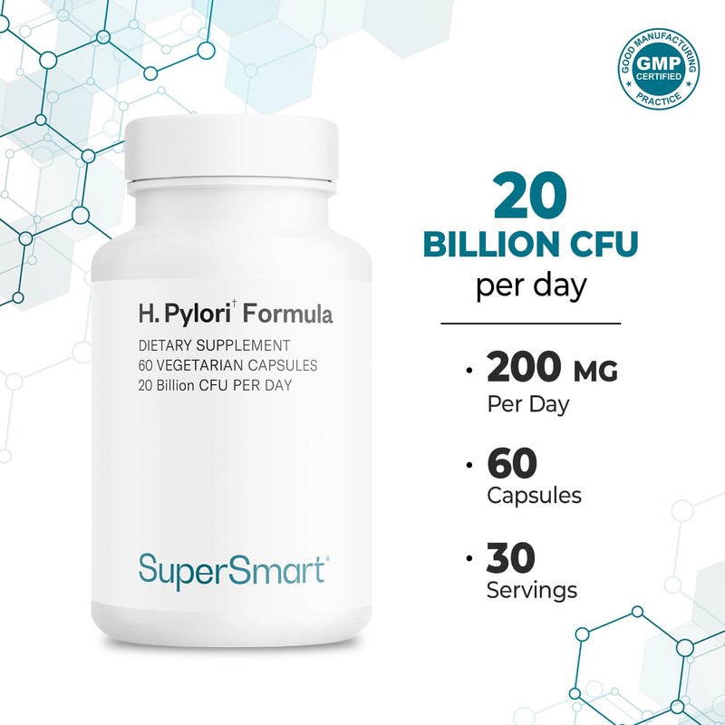 Supersmart H. Pylori Formula 20 Billion CFU per Day (High Potency) - Patented Pylopass Probiotic Lactobacillus Reuteri DSM 17648 Supplement | Non-GMO & Gluten Free - 60 Vegetarian Capsules