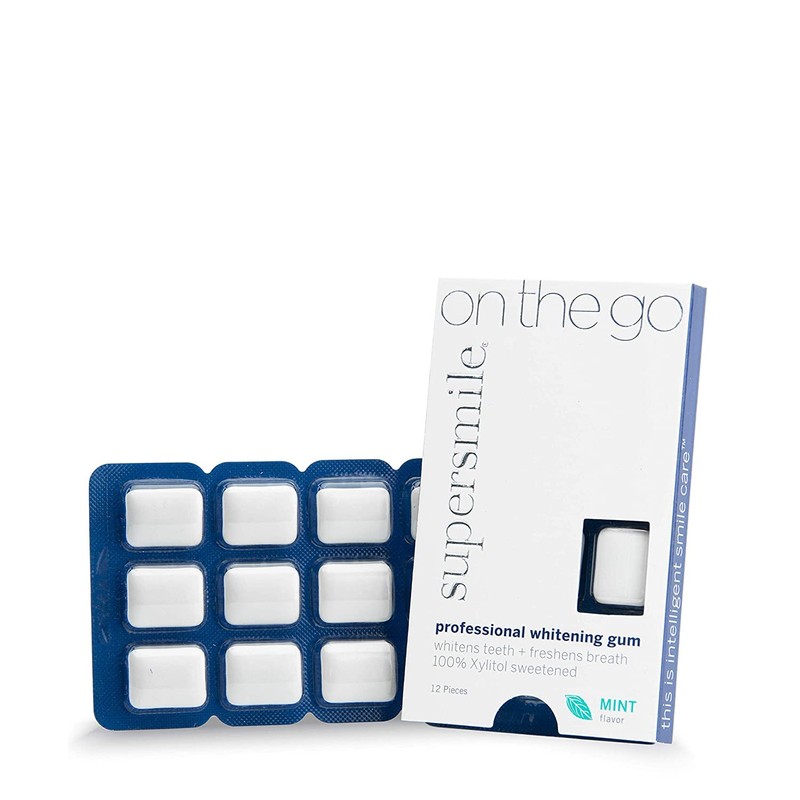 Developed by Dr. Irwin Smigel, world-renowned "Father of Aesthetic Dentistry", Supersmile is the number one teeth whitening brand recommended by cosmetic dentists. Designed to whiten teeth and improve oral health with every use, this Professional Whitening Gum harnesses the power of Calprox, a proprietary formula of encapsulated calcium peroxide. Calprox gently and effectively dissolves sticky biofilm from teeth, safely lifting and removing stubborn surface stains such as coffee, tea, or red wine. The great-tasting mint flavor is long lasting for fresher breath and is sweetened with 65% Xylitol. No other added sugars. Guarantees the most effective way to consume the anti-cavity benefits of Xylitol and contains no silica, parabens, sulfates, known allergens, animal by-products, or BPA. It's also Kosher.