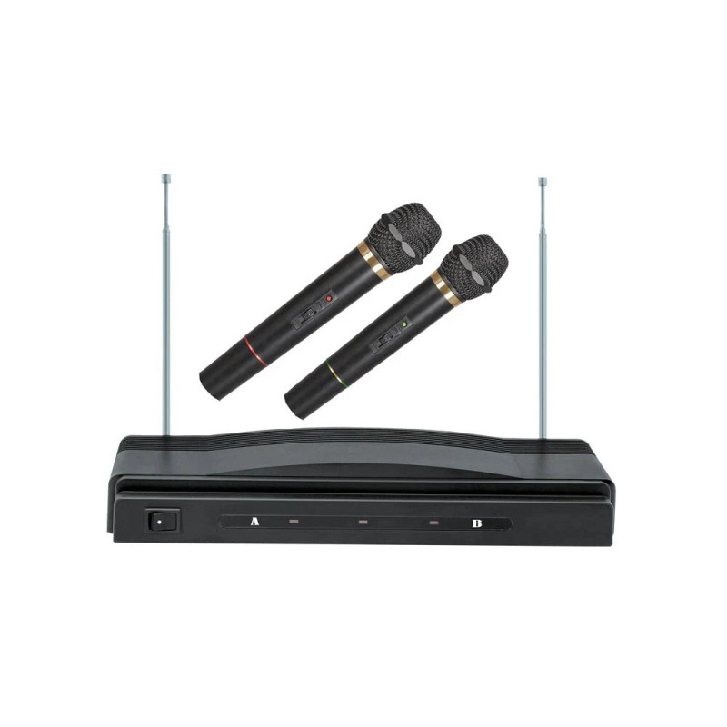 HIGHLIGHTSWIRELESS RECEIVERConstructed to promote ease and convenience, this microphone system features a wireless receiver that easily connects each microphone. Its cordless design provides added advantage when in use. LIMITLESS ENTERTAINMENT OPTIONSSuitable for karaoke jamming, events, meetings, celebrations, acoustic nights, and more! This microphone system is crafted to promote crisp and clean sound for better hearing without static disruptions. COMPLETE INCLUSIONComes with two pieces of high-quality microphones that can be easily connected to the receiver and a user manual guide for easy and hassle-operation. COMPACT SYSTEMPractically constructed with a compact design, allowing every user to easily carry the unit. It can be easily placed in entertainment bags and boxes for convenient safekeeping and transporting
