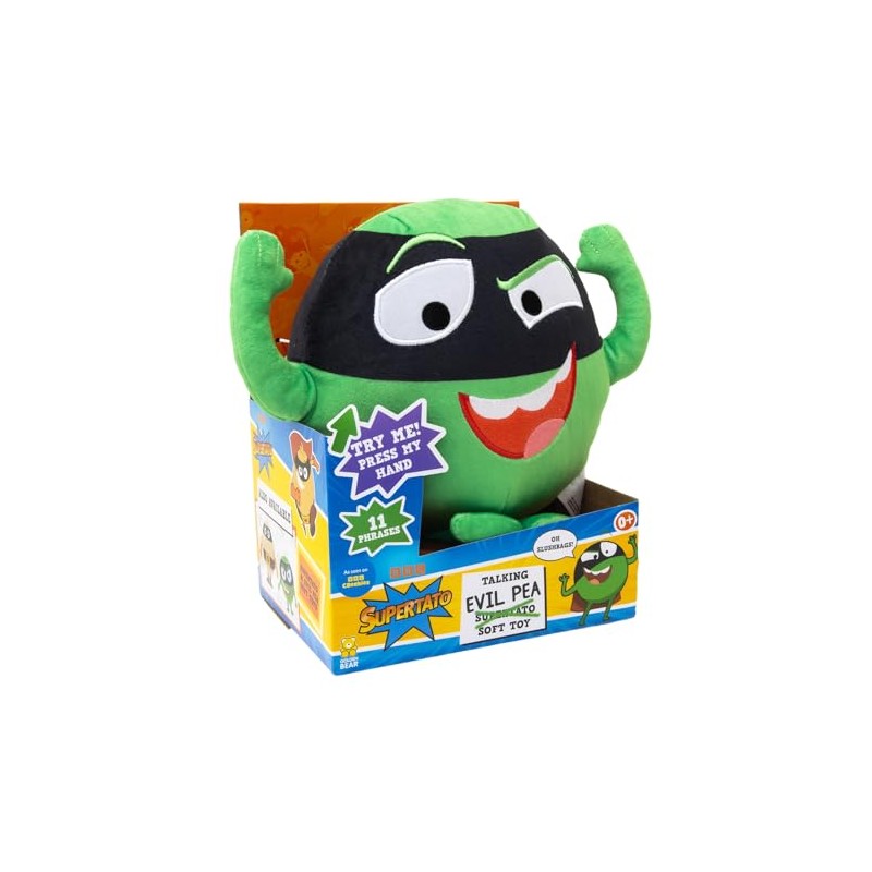 - Official Supertato Toy: Based on Evil Pea from the bestselling books and CBeebies series Supertato! The Supertato book is based in a supermarket and the Hero Potato that is "Supertato" comes up against his nemisis Evil Pea but supertato always sees the good in everyone, including Evil Pea.