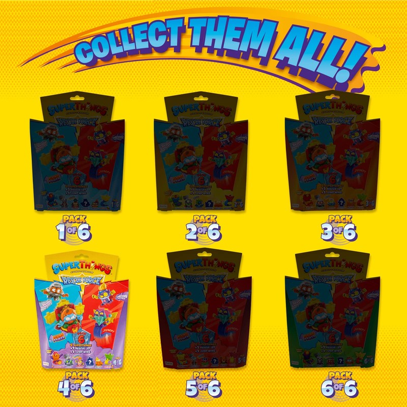 SUPERTHINGS Rescue Force Series – 6-Pack. Includes 4 SuperThings (1 rare silver captain), 1 Rescue Jet and 1 Jump Wing 4/6