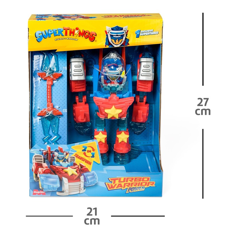- TRANSFORM YOUR TURBO WARRIOR – The Turbo Warriors have arrived in Kaboom City, Turbo Warrior Power is a robot from the next generation, who transforms into a car, This hero is captained by Lancelord, but is also compatible with any SuperThing or Kazoom Kid, so the fun never ends