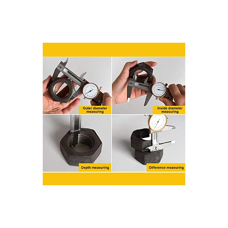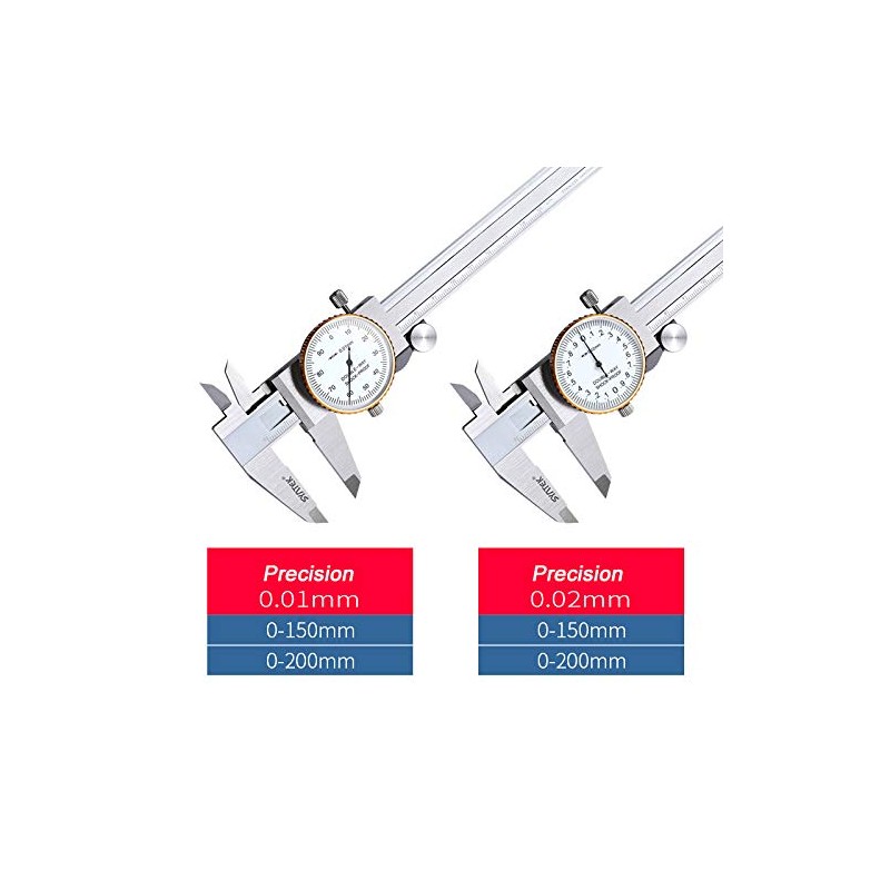 SUPERTOOL Professional Caliper Vernier, 1PC Dial Caliper, Stainless Steel Dial Caliper Measuring Tool Dial Caliper Vernier-0-200mm(0.01mm)