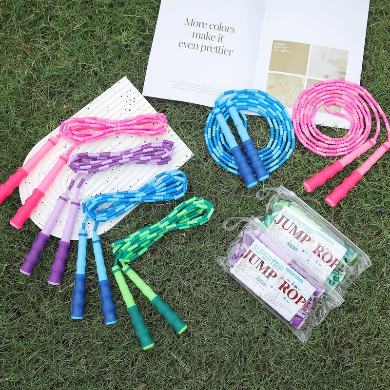 Supertrip Jump Rope Kids - 8 Pack Soft Beaded Skipping Rope Adjustable Tangle-Free Segmented Jumping Rope for Children and Students (2Blue-2Purple-2Pink-2Green)
