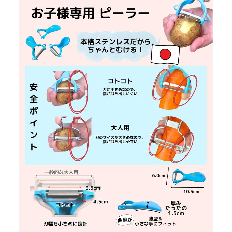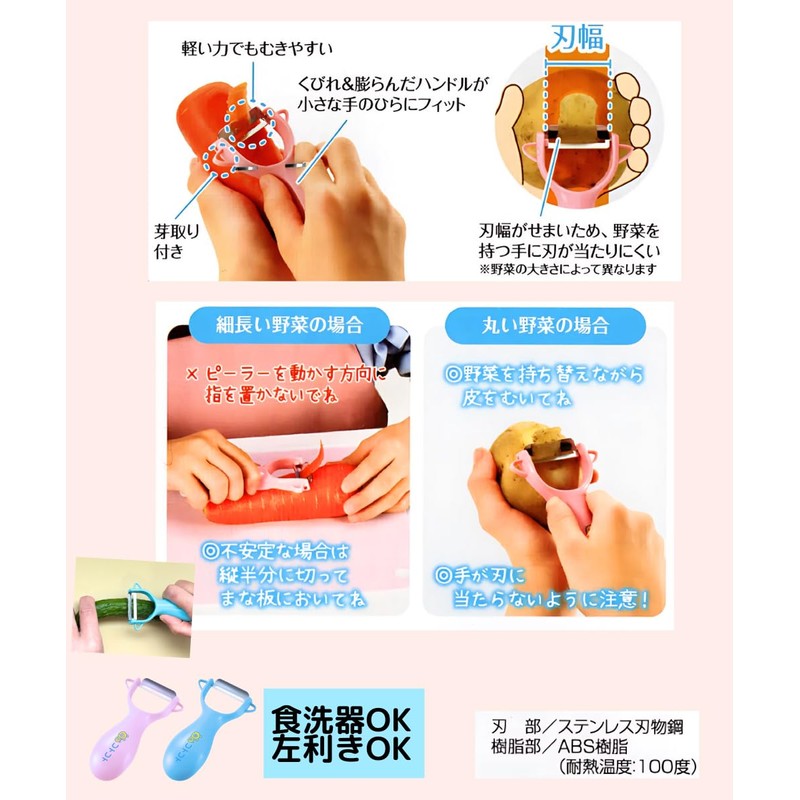 Supervised by Active Food Stylist, Easy to Use with Mini Recipe for Kids, Made in Japan, Peeler, Perfect Size for Small Hands, Narrow Blade Width, Safety Consideration, Authentic Japanese Stainless