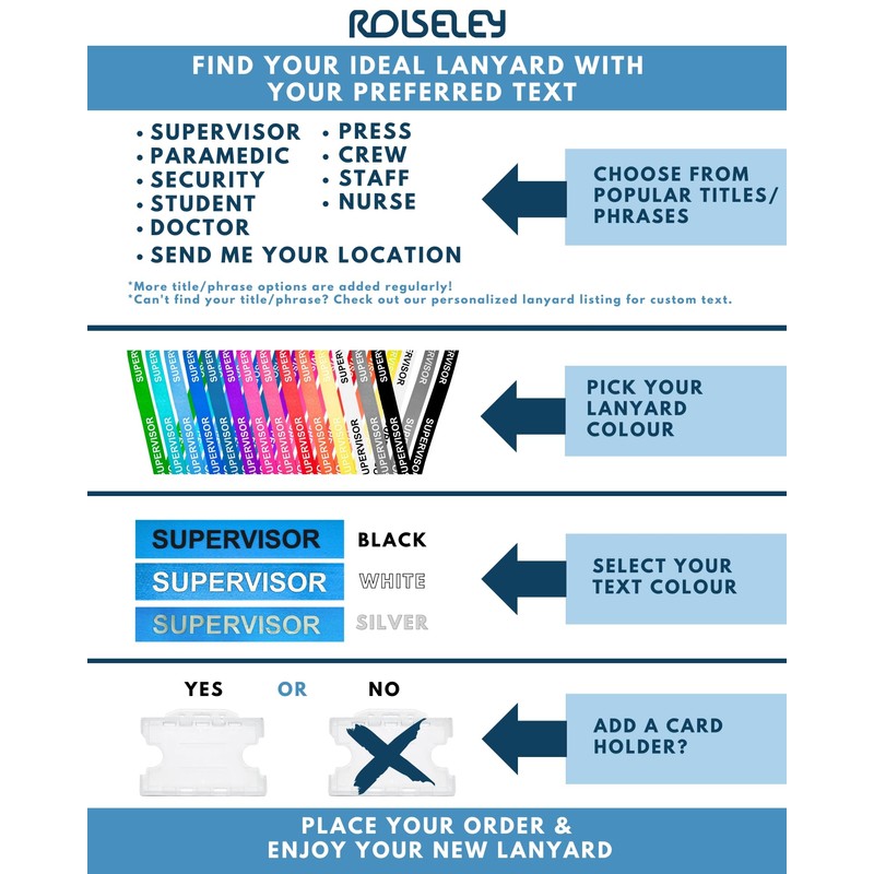 - VARIETY OF COLOURS: Choose from our wide range of vibrant colors to match your preference and style. We offer a lanyard for every position in a variety of appealing shades.