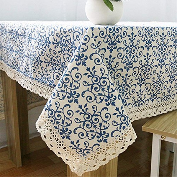 Superwinger Classic Linen Cotton Blue Flower Printed Tablecloth Dustproof Rectangular Table Cloth Wedding Party Hotel Table Cover,Assorted Size