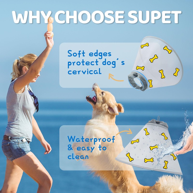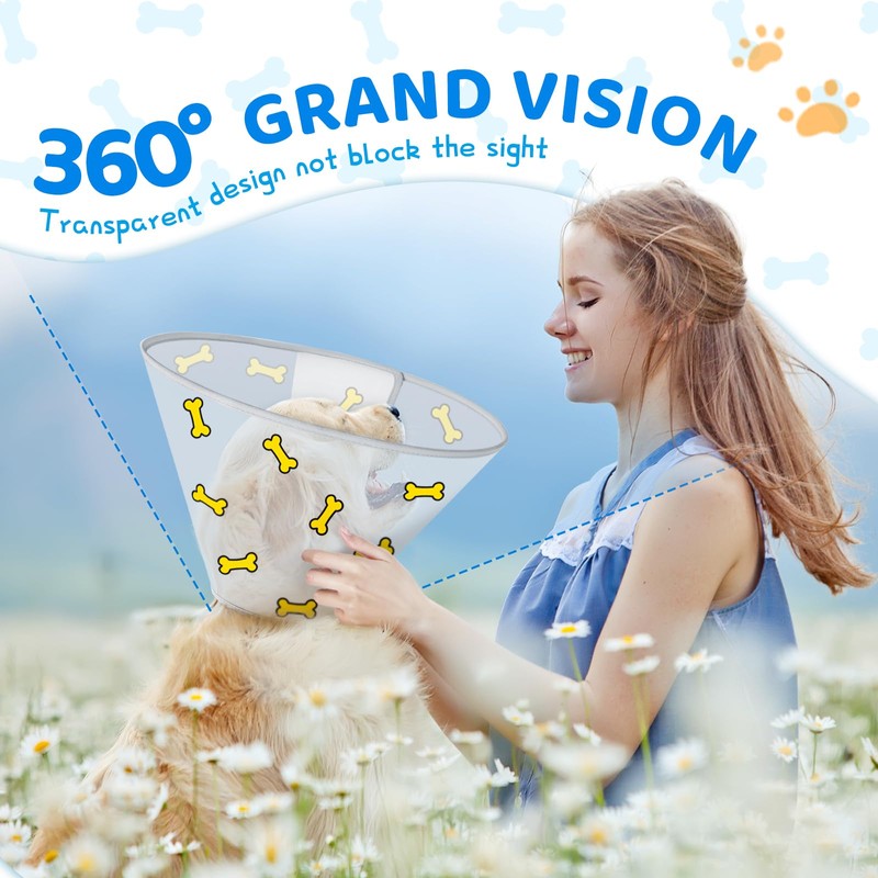 - 【Soft Protect Edge】This soft Cone Print for dogs has a soft protective fabric around the neck to protect your dog's cervical spine, ensuring they have a pleasant experience. The waterproof surface of this dog Cone Print is incredibly easy to clean. You simply need a paper towel to wipe it clean, unlike other dog Cone Prints that are difficult to wash. Just get it for your lovely pet.