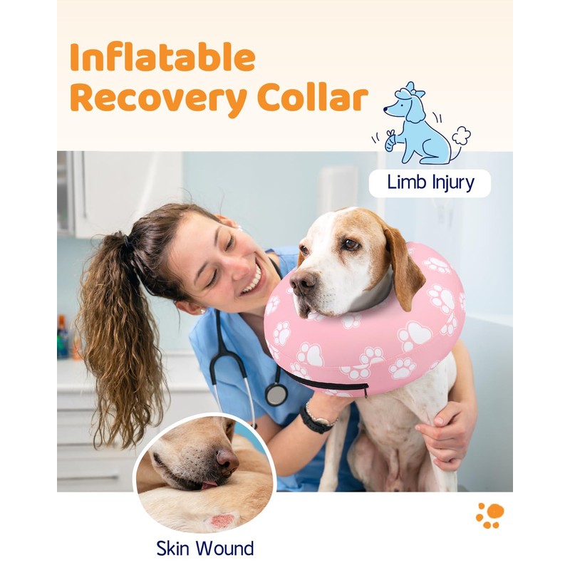 - WARM PROMPT - If your pet wants to escape when he/she put on the collar for the first time, we hope you can work with your dog to acclimate him/her. And due to differences in dog breeds, body sizes, and growing environments, this blow up dog cone collar may not be suitable for dogs with long noses, long legs, long tails, and long bodies. Any more questions, we are here to assist you, we sincerely wish your pet a speedy recovery.