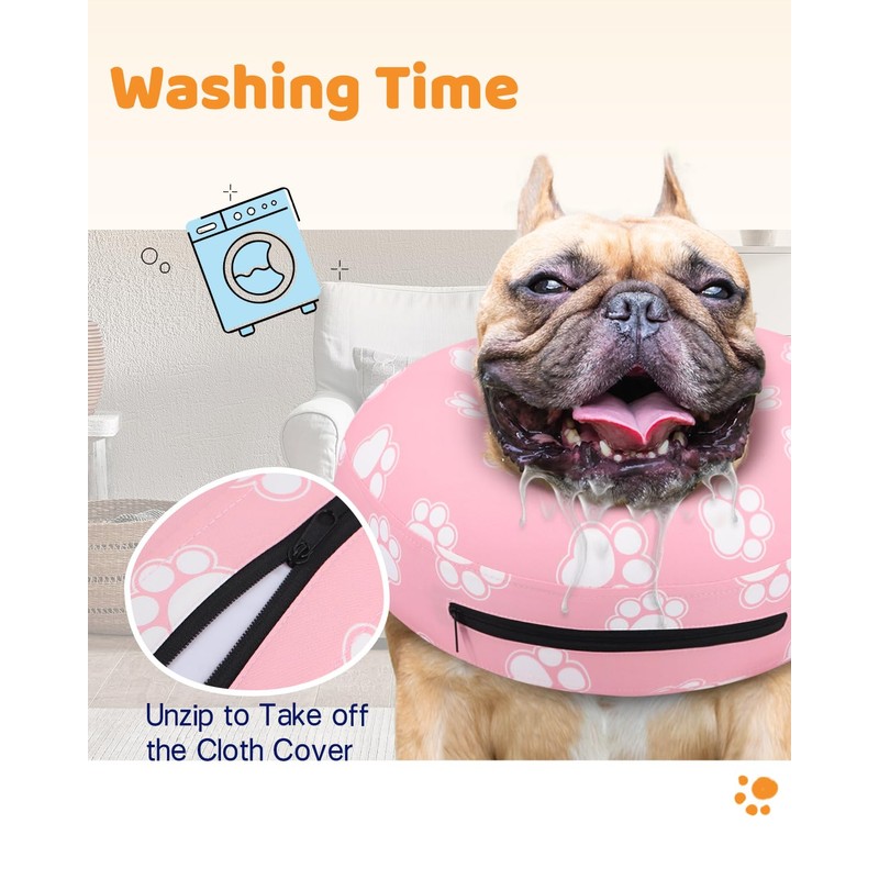 - NON-STICK FABRIC - Unlike other common velvet inflatable dog collars for after surgery donut, the outside of this dog soft cone is made of upgraded non-stick fabric, then you won't have to keep cleaning pet's hair frequently. Also it is easy to clean if needed, just unzip to take off the outer cloth. Soft cones for dogs after surgery keeps your dog comfortable, can even act as a neck pillow which helps him/her fall asleep quickly and forget the pain of the wound.