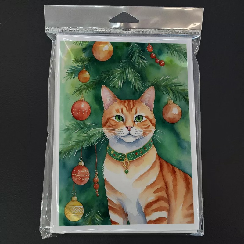 Suphalak Cat By Christmas Tree Greeting Cards Envelopes Pack 8 DAC7263GCA7P