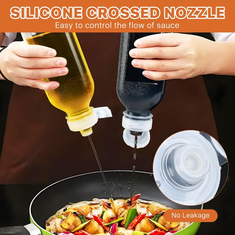 - LEAK-PROOF DESIGN: These sauce bottles have a silicone flexible crossed nozzle and a flip top lid, which can easily control the flow of liquid sauce and dust proof, the lid is attached to the cap, will not leak, blocks the sauce from contact with air, keeping condiments fresh.
