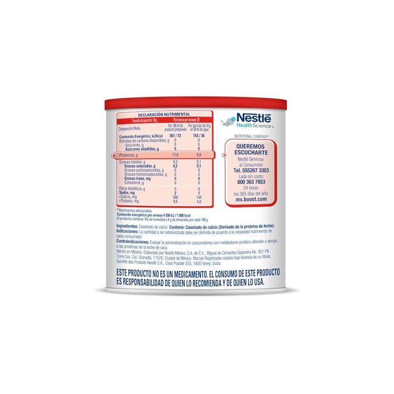 CASEC® es una proteína en polvo fácil de combinar con alimentos. Contiene 8.8g de proteínas. Caseinato de calcio. Está contraindicado para su uso por vía parenteral. Consérvese en un lugar fresco y seco. Evaluar la administración en consumidores con metabolismo proteico alterado o alergias a las proteínas de la leche de vaca. Libre de gluten. No modifica sabor, ni olor. CASEC® es un desarrollo de Nestlé Health Science. ESTE PRODUCTO NO ES UN MEDICAMENTO. EL CONSUMO DE ESTE PRODUCTO ES RESPONSABILIDAD DE QUIEN LO RECOMIENDA Y DE QUIEN LO USA.