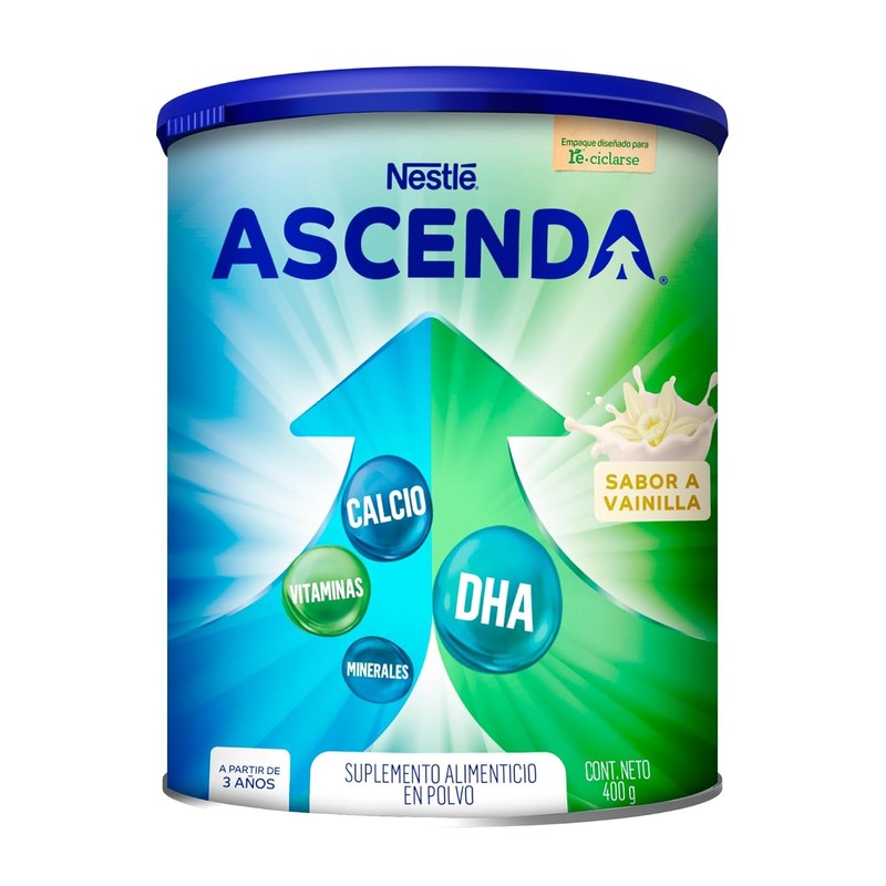 El nuevo Ascenda® es un suplemento nutricional para apoyar el Crecimiento Físico y Mental. Se puede empezar a subministrar a partir de los 1-3 años. Este suplemento alimenticio contiene DHA, fosfolípidos, vitaminas y minerales.
