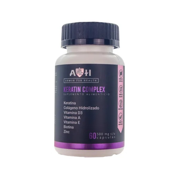 - Suplemento nutricional con keratina y colágeno para fortalecer cabello y uñas.