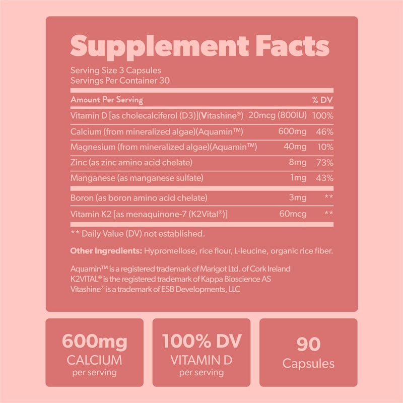 🌟 ⭐ Suplemento de calcio - Alimento integral con vitamina K2 y D3, magnesio, zinc, boro, complejo mineral. Obtenido de forma sostenible a partir de algas rojas. Para fortalecer y apoyar los huesos. 90 ⭐ 🌟