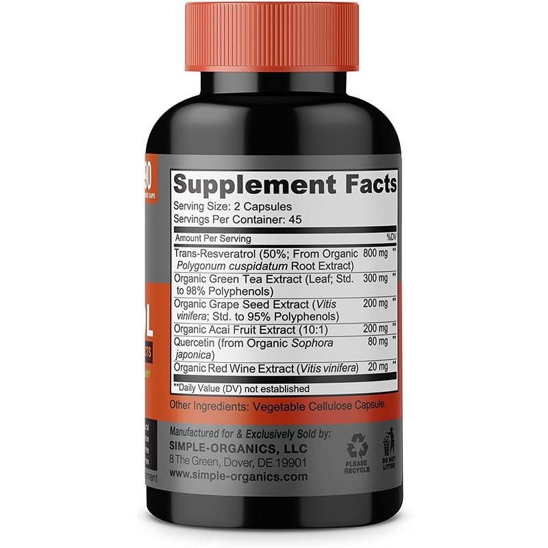 - ✅ Hemos combinado trans-resveratrol orgánico con extracto de té verde orgánico que ayuda a mejorar el contenido antioxidante. El extracto de té verde tiene un efecto poderoso en el cuerpo debido a sus altos nutrientes y su carga de antioxidantes.