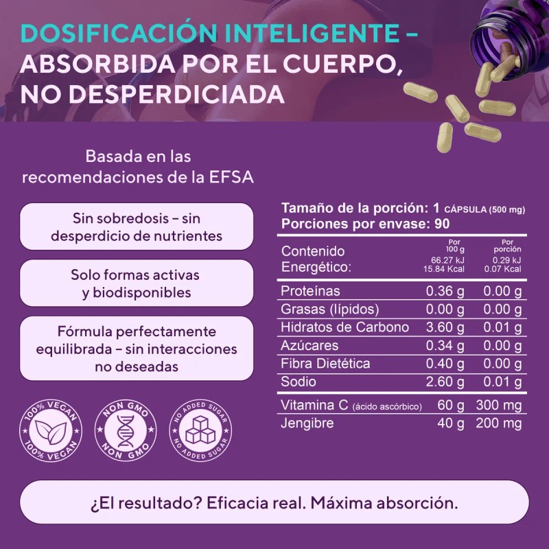 Suplemento De Vitamina C Suplemento de Vitamina C 300 MG con Jengibre Cpsulas Veganas, Sin OGM, Sin Gluten Fabricado en Holanda 90 Cpsulas300 Mg...