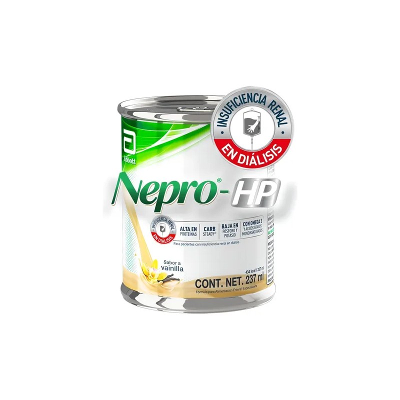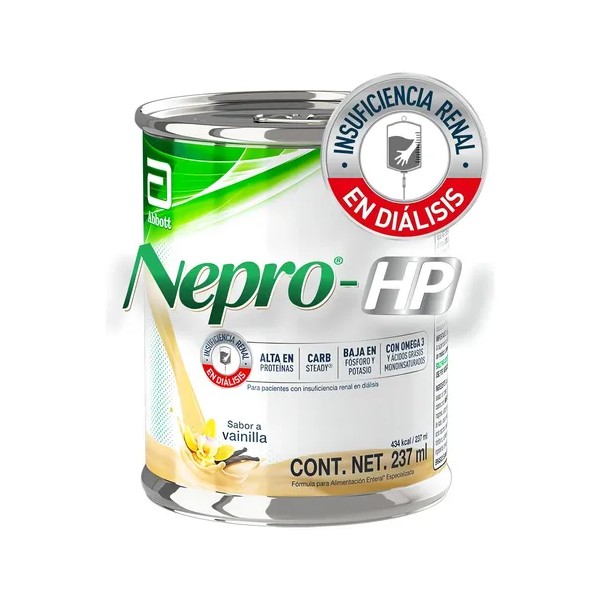 • Nepro® Dieta líquida completa, hipercalórica y normoproteica con hidratos de carbono de absorción lenta, lata con 237 mL sabor vainilla