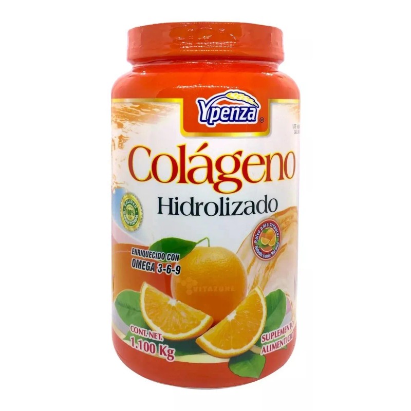 Suplemento en polvo Ypenza Colágeno Hidrolizado sabor naranja en botella de 1.1kg