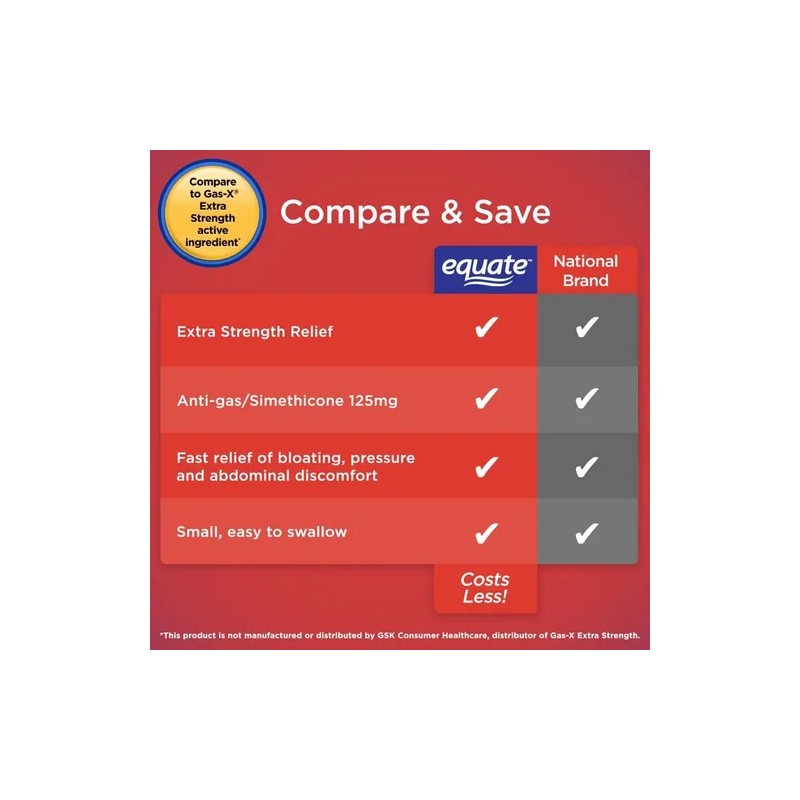 Suplemento Equate 72 Capsulas De Alivio Estomacal Gas Relief