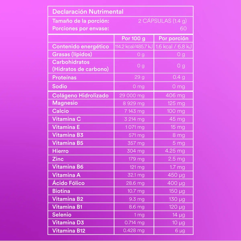 - Vitamina A, C y E: Antioxidantes que promueven una piel radiante y saludable. NUESTRAS CÁPSULAS SON
