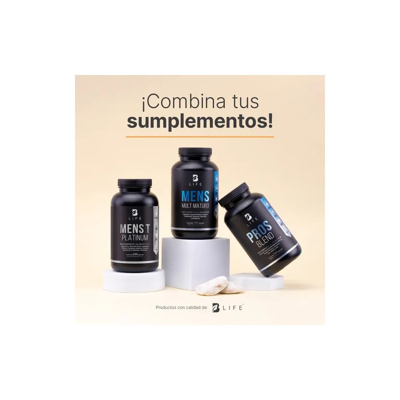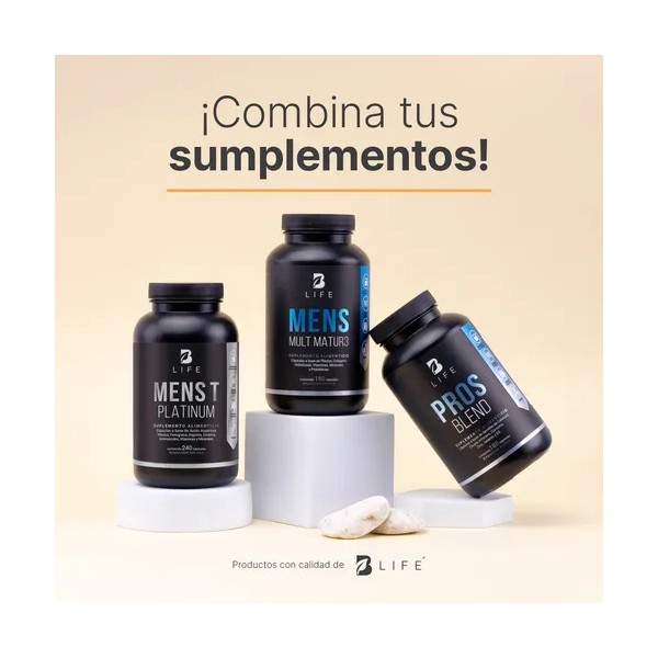 ¡Eleva tu vitalidad con Pros Blend B Life! Cada cápsula de 500 mg contiene una asombrosa composición a base de Semilla de Calabaza, Ciruelo Africano, Cúrcuma, Zinc, Selenio y D3. Una valiosa sinergia de nutrientes y extractos naturales valiosos para potenciar tu bienestar, ausentes en otras presentaciones. Contiene 180 cápsulas.