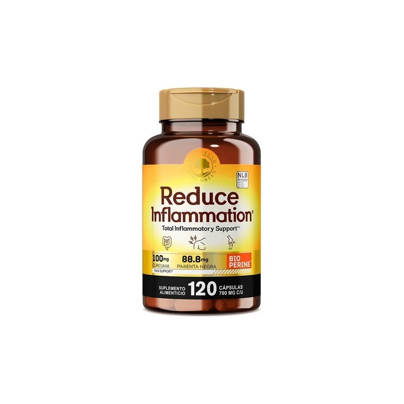Descripción Limpia: Reduce Inflammation® es una combinación de la cúrcuma y la pimienta negra estos ingredientes juntos presentan un gran contenido en sustancias antioxidantes que protegen nuestras células frente al envejecimiento, pueden mejorar nuestra memoria y ayudar a proteger nuestro organismo frente al deterioro cognitivo.