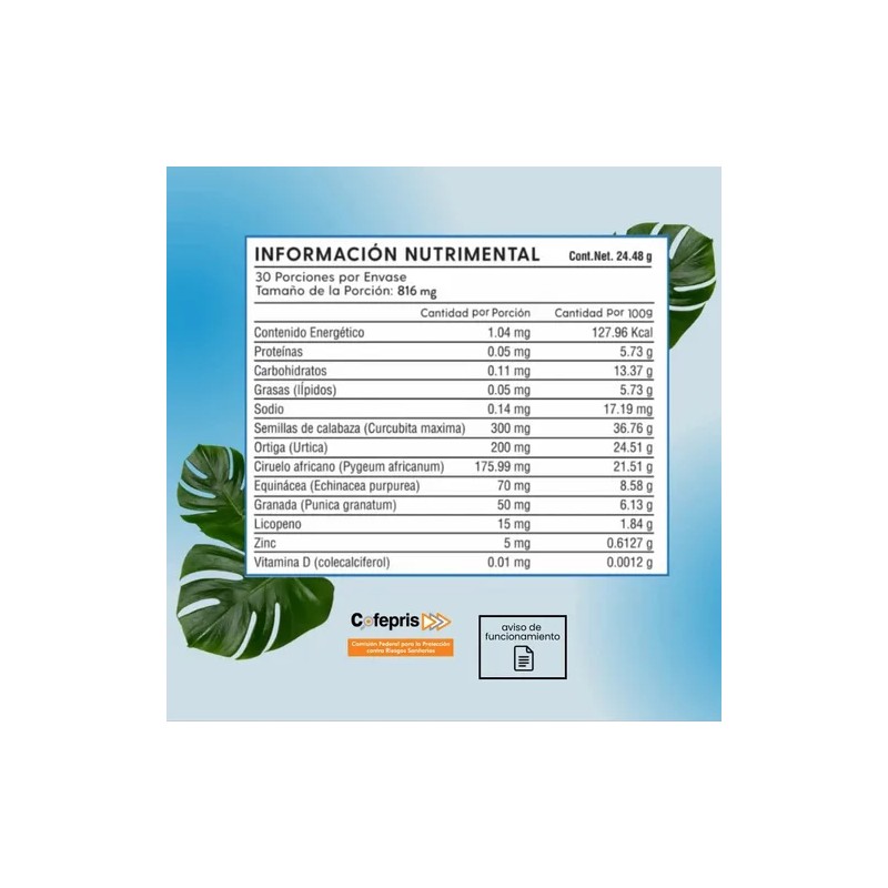 Suplemento Para Salud De La Próstata 60 Caps Sin Sabor