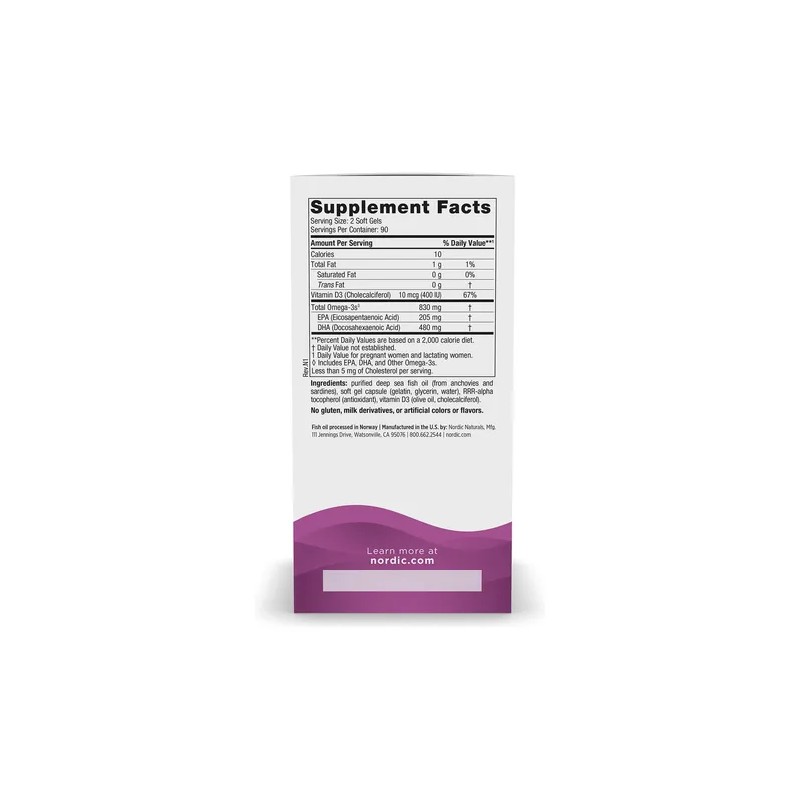 - 830 mg de omega-3 totales; 400 UI de vitamina D3